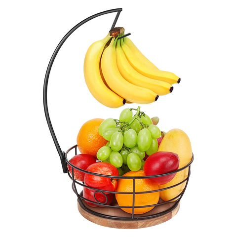 2 cestelli pneumatici ciotola impilabile da cucina Rack con albero di Banana appendiabiti per piano di lavoro da cucina
