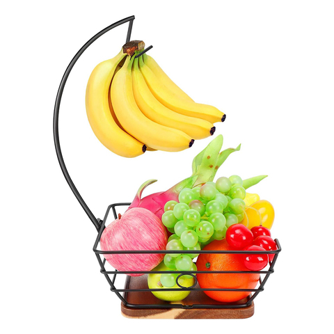 Porta banane Stand in metallo legno Banana Rack per bancone cucina